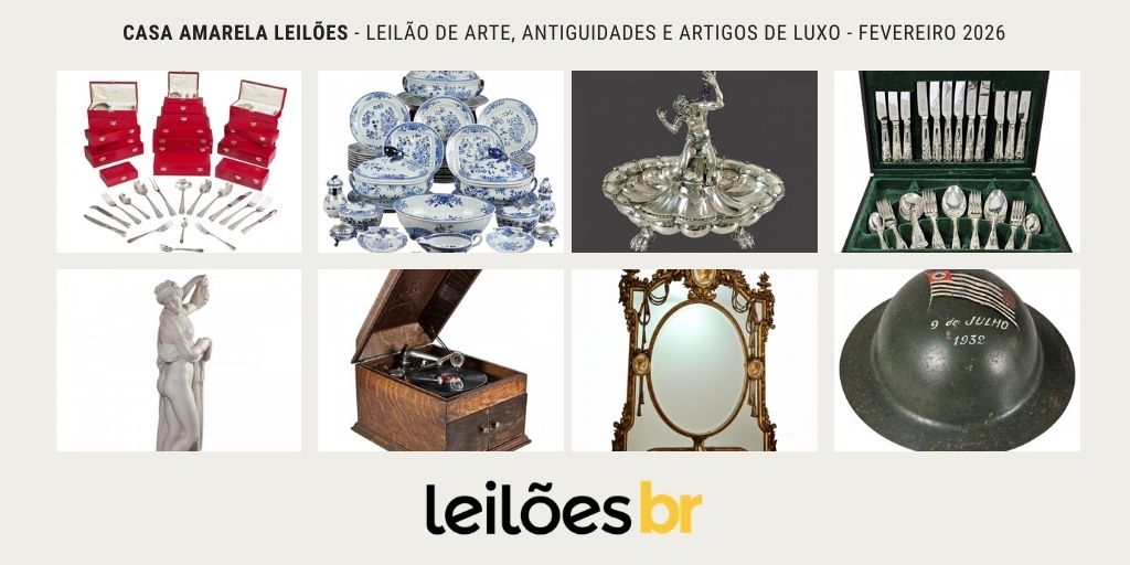 A Tenor e Pellizzari Leilões realizará no dia 21 de Fevereiro, às 19h, o seu Leilão Especial – Reserva de Prata, com um total de 279 lotes. Este leilão oferece ótima oportunidade para colecionadores, com alto valor histórico. Separamos abaixo alguns dos destaques especialmente, clique nas imagens para ir diretamente a peça. EXPOSIÇÃO De 2 […]