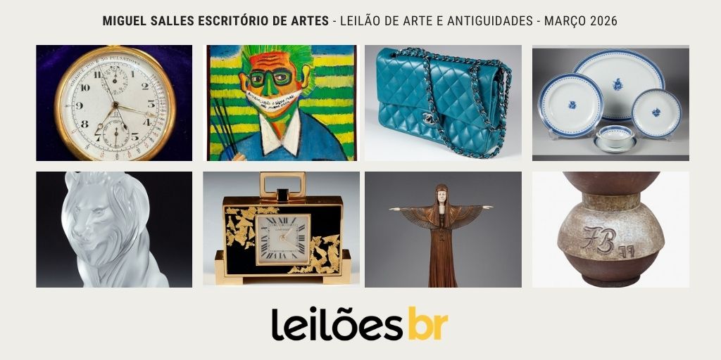 O Miguel Salles Escritório de Artes fará nos dias 3, 4 e 5 de Março, às 20h, o seu Leilão de Arte e Antiguidades com 533 lotes variados, com excelentes oportunidades em porcelanas, quadros, esculturas e muito mais! Separamos abaixo alguns dos destaques, clique nas imagens para ir diretamente a peça. EXPOSIÇÃO Período de exposição: de […]