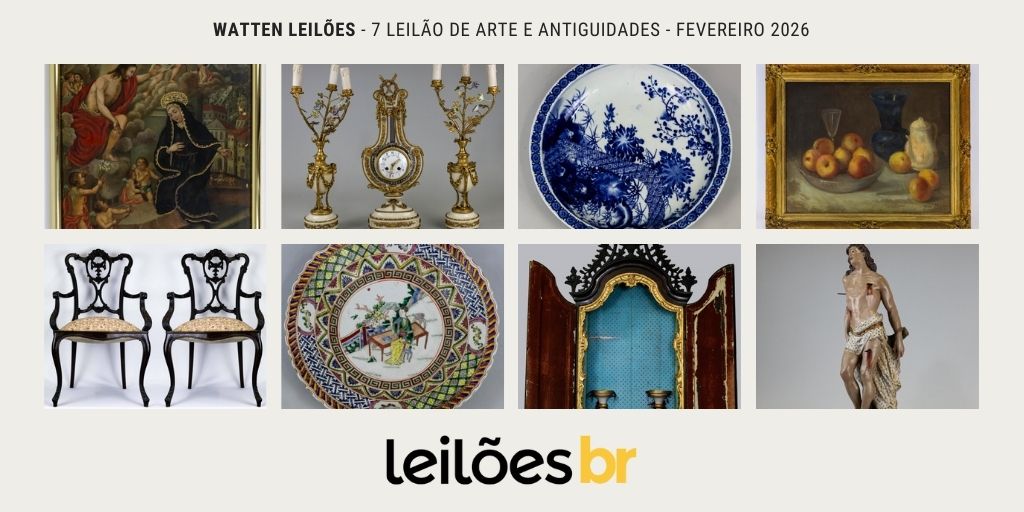 A Watten Leilões realizará no dia 9 de Fevereiro, às 19:30h, seu 7º Leilão De Arte e Antiguidades, com 155 lotes incríveis de decoração, design, antiguidades, esculturas, mobiliário, joias, arte sacra, colecionismo e muito mais! Confira alguns destaques que separamos especialmente para vocês, clique nas imagens para ir diretamente a peça. EXPOSIÇÃO Dias 30 de […]