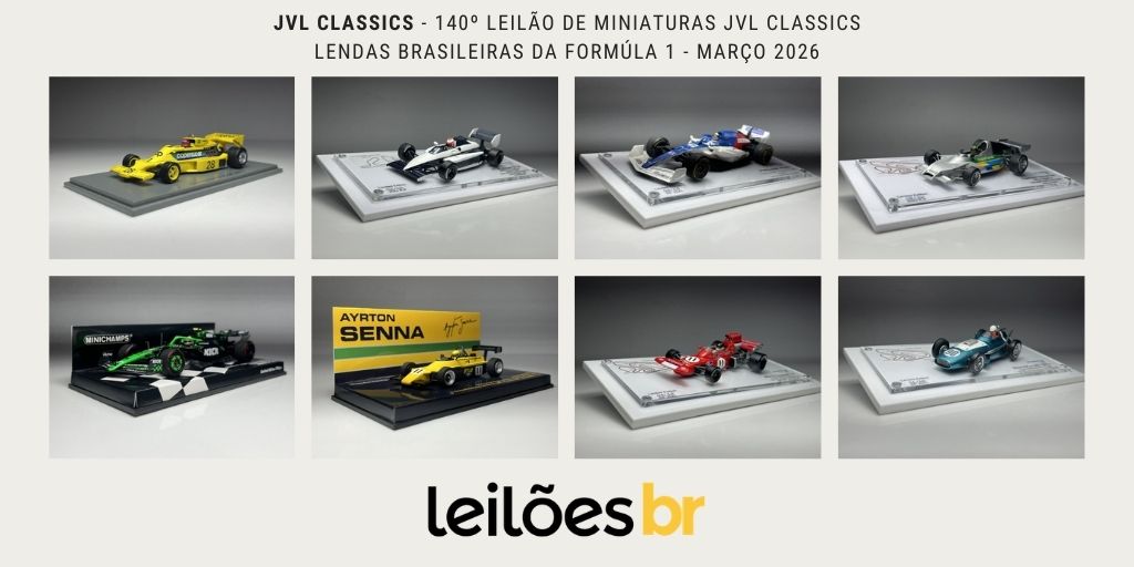 A JVL Classics Leilões fará no dia 10 de Março, às 19h o seu 140º Leilão de Miniaturas JVL Classics – Lendas Brasileiras da Formúla 1. Não perca! Mais informações abaixo ! Confira alguns destaques que separamos especialmente para vocês, clique nas imagens para ir diretamente a peça. EXPOSIÇÃO Somente online. LEILÃO Dia 10 de […]