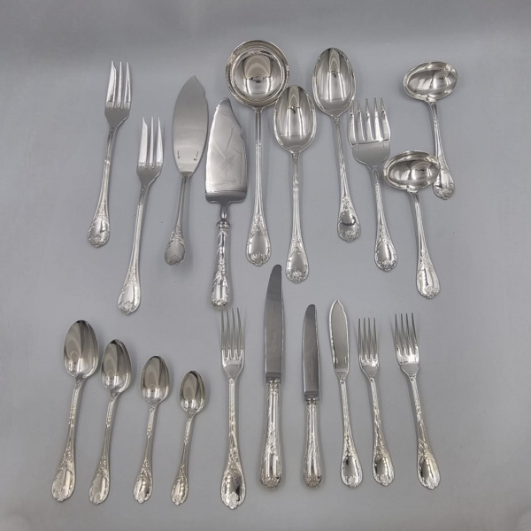 clique aqui para ver o loteCHRISTOFLE – PRATA DE LEI – FAQUEIRO – MARLY – Excepcional faqueiro em prata de lei francesa teor 925 mls, da renomada manufatura Christofle, modelo Marly, composto por 130 peças, sem uso. Acondicionado em embalagens individuais lacradas à vácuo.