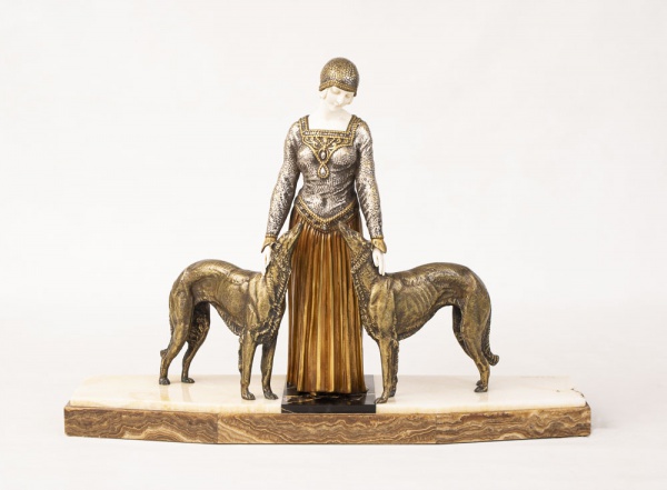 DEMÈTRE CHIPARUS (1886-1947) “Les Amis de Toujours” – 1925. Espetacular grupo Art Deco em bronze e marfim de Demètre Chiparus, base em mármore.