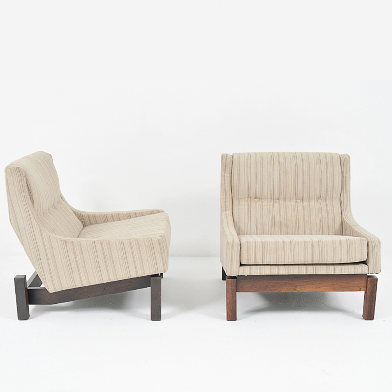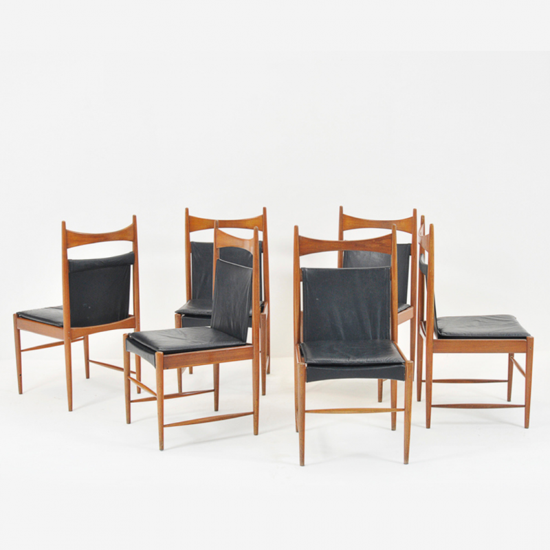 SERGIO RODRIGUES – Conjunto de cadeiras Cantu Alta, em madeira nobre (freijó). Med.: 97h x 50C x 53P cm.
