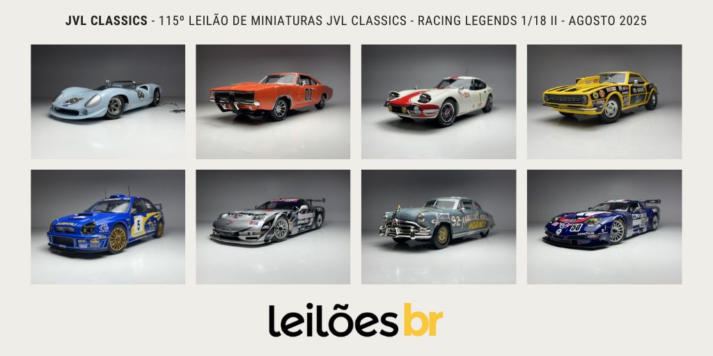 A JVL Classics Leilões fará no dia 26 de Agosto, às 19h o seu 115º Leilão de Miniaturas JVL Classics – Racing Legends 1/18 II. Mais informações abaixo ! Confira alguns destaques que separamos especialmente para vocês, clique nas imagens para ir diretamente a peça. EXPOSIÇÃO Somente online. LEILÃO Dia 26 de Agosto de 2025 […]