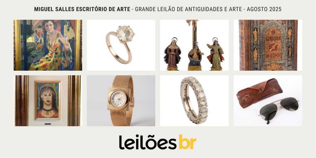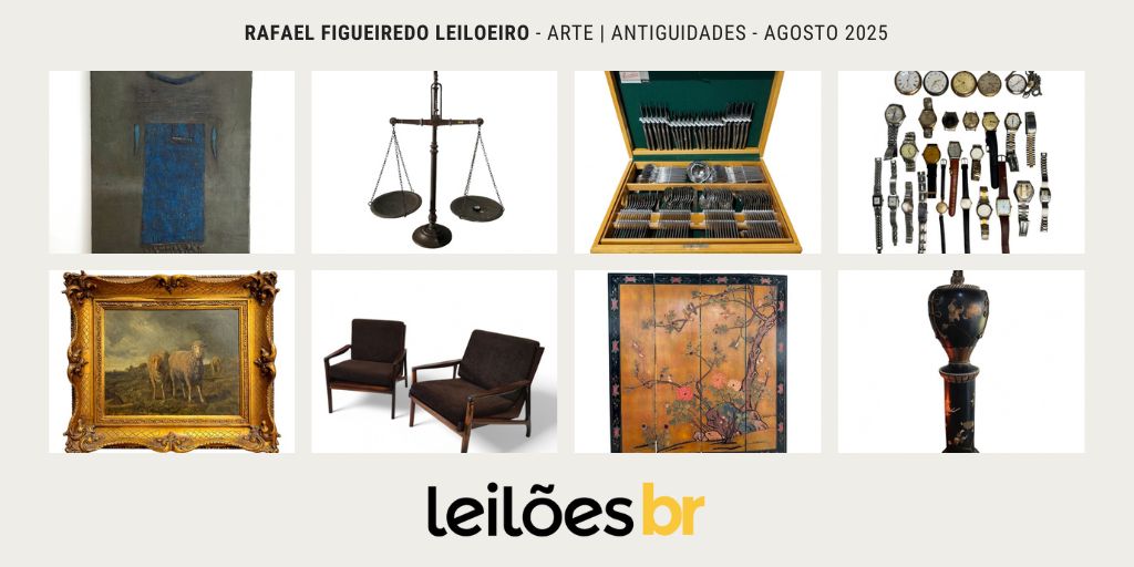 A Fátima Garcia Leilões fará nos dias 25 e 26 de Agosto, às 15h, o seu Leilão de Artes e Antiguidades. Não fique de fora!!! Confira alguns destaques que separamos especialmente para vocês, clique nas imagens para ir diretamente a peça. EXPOSIÇÃO Exposição apenas Online. LEILÃO Dias 25 e 26 de Agosto de 2025 Segunda e […]