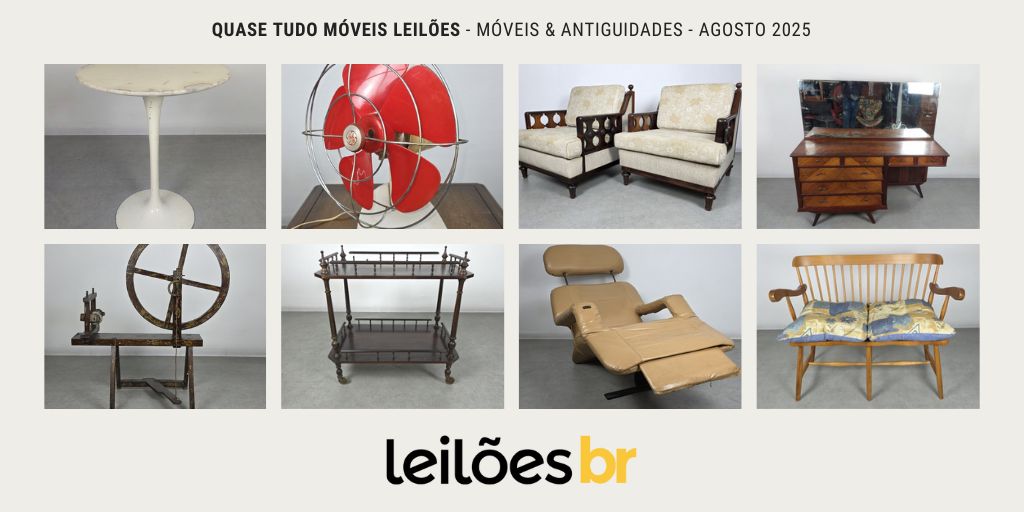 A Quase Tudo Móveis Leilões fará no dia 26 de Agosto, às 20h, o seu leilão Móveis e Antiguidades. Não fique de fora!!! Mais informações abaixo ! Confira alguns destaques que separamos especialmente para vocês, clique nas imagens para ir diretamente a peça. EXPOSIÇÃO Sob agendamento: Dias 19, 20, 21 e 22 de Agosto (Das […]