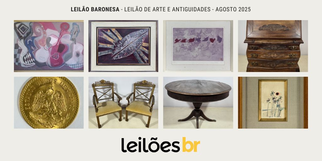O Leilão Baronesa realizará nos dias 18, 19 e 20 de Agosto, às 14h, mais um Leilão de Arte e Antiguidades, com incríveis 717 lotes de pratarias, quadros, colecionismo, decoração e muito mais. Mais informações abaixo ! Confira alguns destaques que separamos especialmente para vocês, clique nas imagens para ir diretamente a peça. EXPOSIÇÃO SOMENTE ON-LINE LEILÃO […]