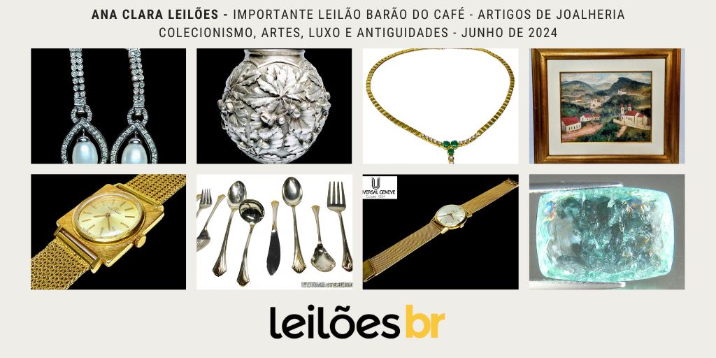 A Ana Clara Leilões realizará nos dias 17, 18 e 19 de Junho, às 19h, o Importante Leilão Barão do Café – Artigos de Joalheria, Colecionismo, Artes, Luxo e Antiguidades, com 820 lotes. Confira!! Confira alguns destaques que separamos especialmente para vocês, clique nas imagens para ir diretamente a peça. EXPOSIÇÃO EXPOSIÇÃO ONLINE VIA WHATSAPP […]