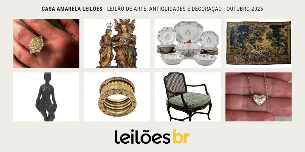 Nos dias 6, 7 e 8 de Outubro, às 20h30, a Casa Amarela Leilões apresenta seu Leilão de Arte, Antiguidades e Decoração, com 816 lotes cuidadosamente selecionados. Explore peças únicas e de grande valor histórico e cultural.