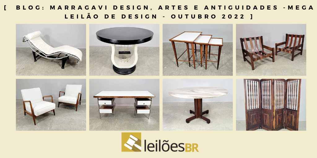 Marragavi Design Artes Antiguidades realizará nos dias 24 e 25 de outubro, às 20h, o seu MEGA LEILÃO DE DESIGN, com 202 lotes belíssimos de mobiliário. Mais informações abaixo ! Confira alguns destaques que separamos especialmente para vocês, clique nas imagens para ir diretamente a peça. EXPOSIÇÃO SOMENTE ON-LINE Em caso de dúvida: Telefone: 21-971830457 (Márcia […]