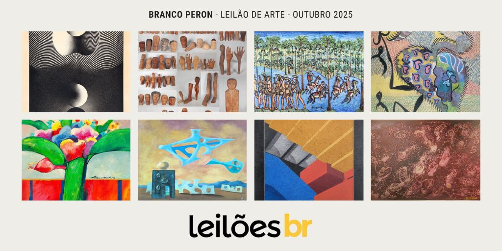 O Branco Peron Leiloeiro realizará no dia 16 de Outubro, às 19:30h, o seu Leilão de Arte, com incríveis 184 lotes! Mais informações abaixo ! Confira alguns destaques que separamos especialmente para vocês, clique nas imagens para ir diretamente a peça. EXPOSIÇÃO De 08 á 16/10/2025 – 10h às 19h – Horário de visitação. AGENDE […]