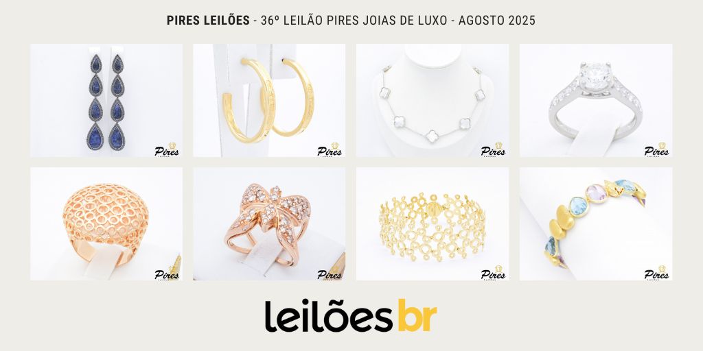 Pires Leilões fará nos dias 25 e 26 de Agosto, às 19h, o seu incrível 36° Leilão de Joias de Luxo. São 300 lotes variados, com excelentes oportunidades em joias, pratas, ouro, entre outros artigos de luxo! Separamos abaixo alguns dos destaques, clique nas imagens para ir diretamente a peça. De 15 de Agosto à […]