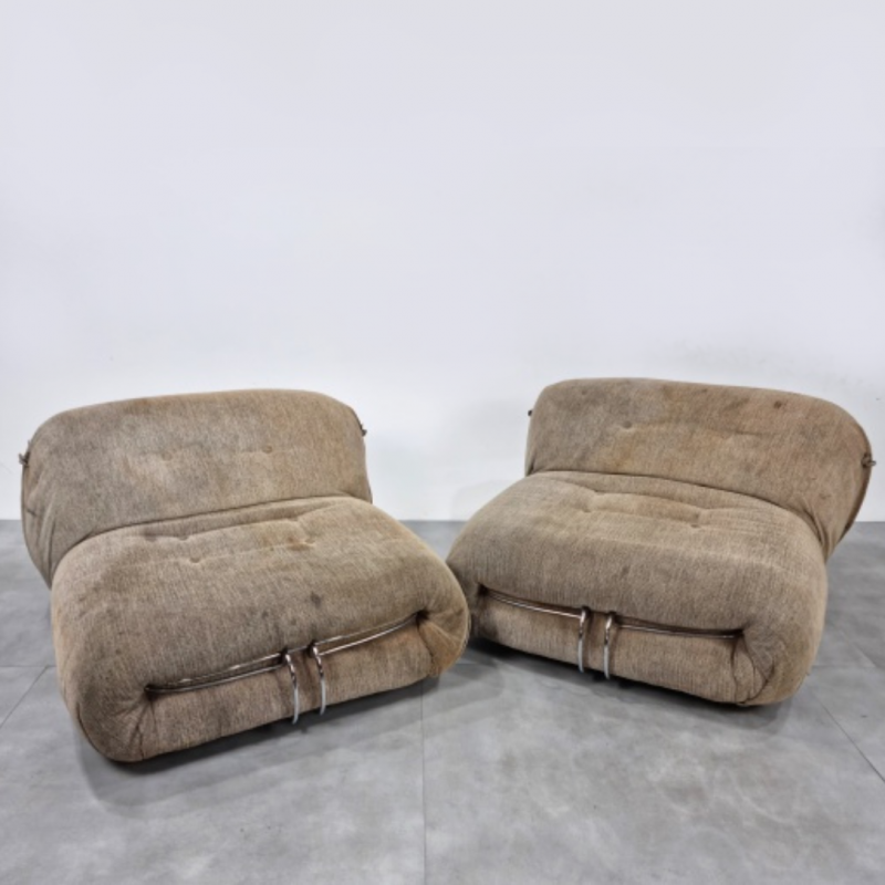 Percival Lafer. Par de poltronas modelo MP 13, em madeira maciça ( restaurada ), com estofamento em courvin e ferragens em metal cromado ( com leve oxidação ). Reproduzidas no livro do artista. Brasil, década de 60. Medindo : 70 x 82 x 76 cm.