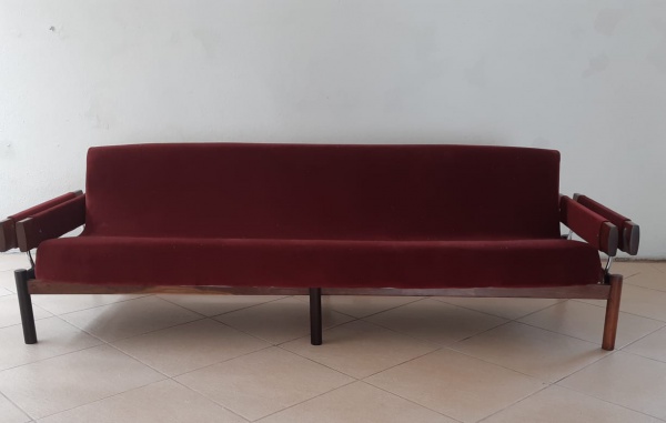 PERCIVAL LAFER SOFÁ em veludo de algodão e jacarandá anos 60 /70 lindamente restaurado com partes em cromado tbm restauradas 2.30 m