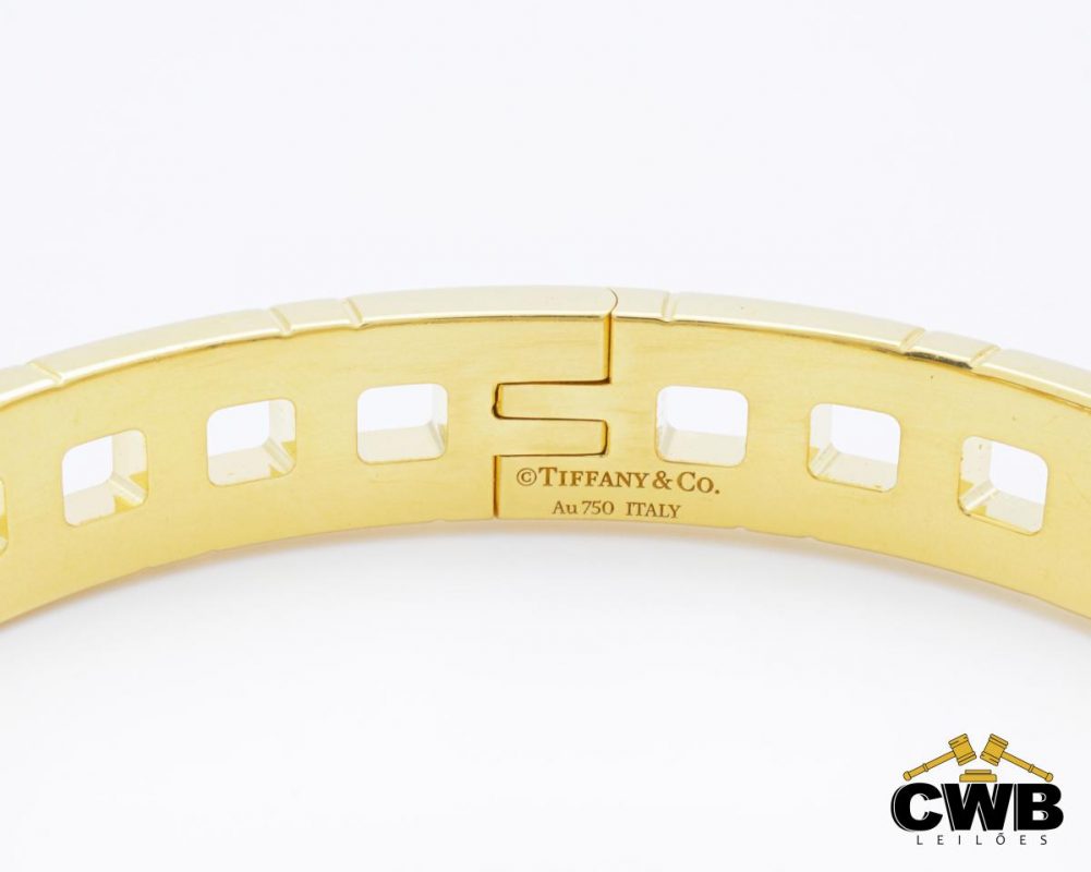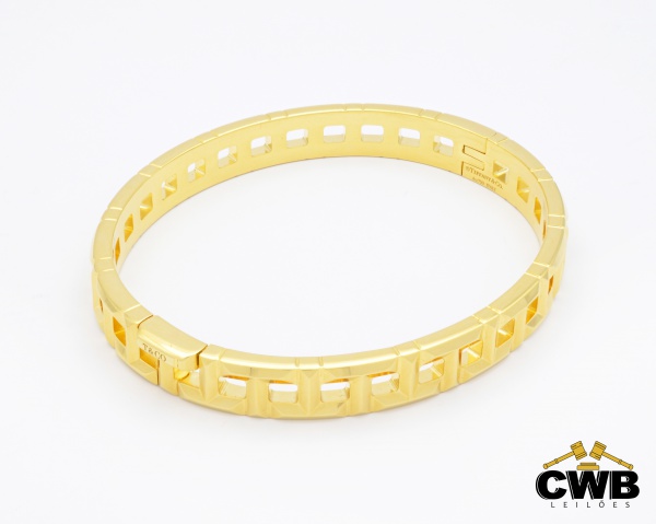 TIFFANY & Co. – Bracelete True Narrow Hinged Bangle em Ouro Amarelo 18K – Espessura de 7mm, Tamanho Extra pequeno de 121-133mm, peso de 31,5 gramas. Acompanha certificado de garantia CWB LEILÕES.