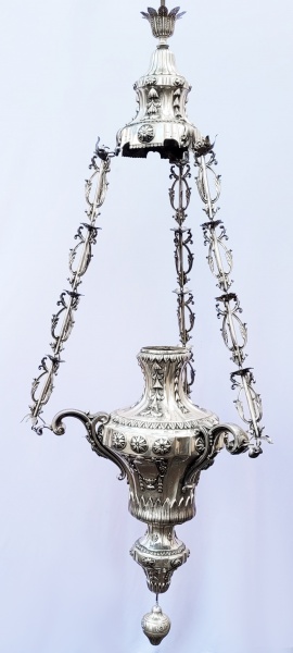 clique aqui para ver o loteMUITO GRANDE E BELO LAMPADÁRIO EM PRATA DE LEI ESTILO E ÉPOCA DONA MARIA I. MARCAS DE CONTRASTE PARA PORTUGAL (P COROADO DUAS TORRES) EMPREGADO NA REGULAMENTAÇÃO DA CONTRASTARIA DE PEÇAS MUITO ANTIGAS (SEC. XVIII OU ANTERIORES) QUE APÓS A INVASÃO NAPOLEONICA DE 1808 FORAM ENCONTRADAS SEM CONTRASTE. ESSE MONUMENTAL LAMPADÁRIO DE TAMANHO INCOMUM É DECORADO COM ELEMENTOS TÍPICOS DO FINAL DO SEC. XVIII, NO ALVORECER DO REINADO DE DONA MARIA I (FLORES E LAURÉIS). EXTRAORDINÁRIA QUALIDADE! PORTUGAL, SEC. XVIII. 180 CM DE ALTURA
