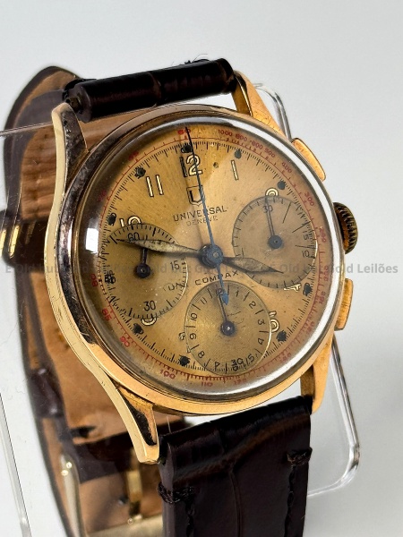 OURO 750 – Universal – Relógio Geneve Compax Cronógrafo 285 em ótimo estado de conservação – Funcionando – 37mm.