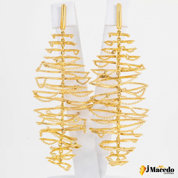 clique aqui para ver o loteBrinco HSTERN – Coleção Seda – Ouro Amarelo 18k com diamantes Tamanho 7cm Peso 22,3g Acompanha o certificado JMACEDO LEILÕES.