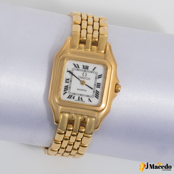clique aqui para ver o loteRelógio Omega Vintage Feminino Ouro Amarelo 18k Quartzo 22mm Ponteiro de segundos . Tamanho da pulseira 16cm Peso 47,1g. Acompanha certificado JMacedo Leilões