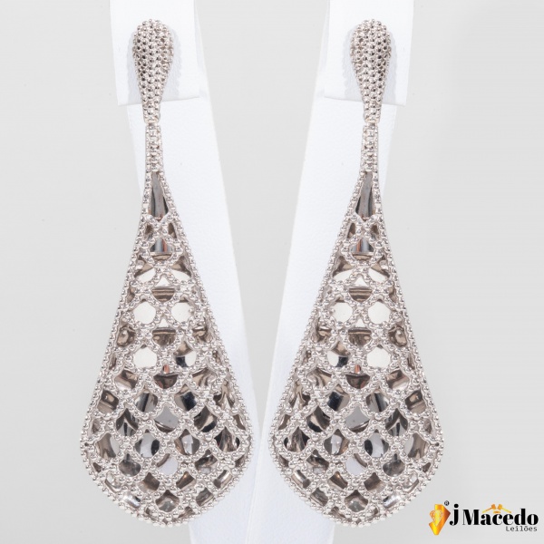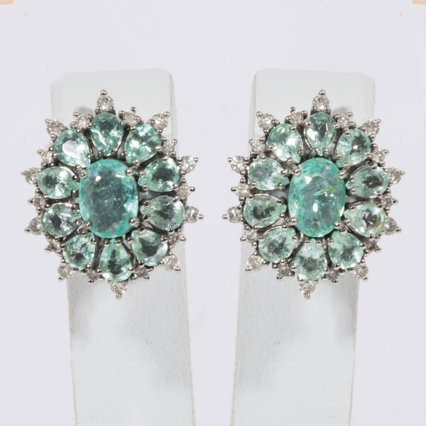 clique aqui para ver o loteBrinco Ouro Branco 18k com turmalinas paraiba e diamantes Tamanho 17,2mm Peso 6,8g Acompanha o certificado JMACEDO LEILÕES
