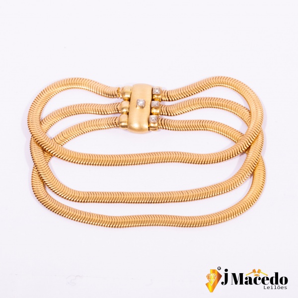 clique aqui para ver o lotePulseira Cartier Ouro Amarelo 18k com detalhes em Ouro Branco 18k Tamanho 21cm Peso 51,5g. Acompanha o certificado JMACEDO LEILÕES