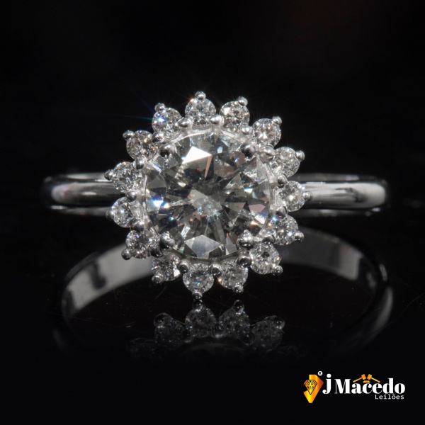 clique aqui para ver o loteAnel Ouro Branco 18k com um diamante central de 1,10ct Letra NVS1 lapidação brilhante Aro 18 Peso 2,8g. Acompanha o certificado JMACEDO LEILÕES