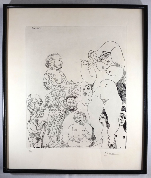 clique aqui para ver o lotePicasso, litografia, 15/50, série erótica, medindo 41cm x 34cm, emoldurado com vidro, medida total 57cm x 44cm, assinado.