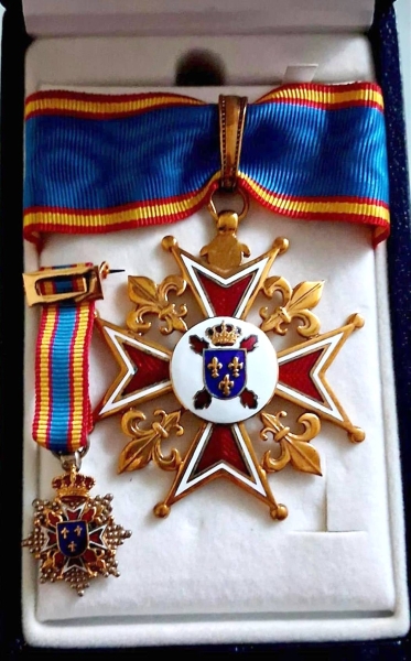 clique aqui para ver o loteRara comenda de ouro maciço com as armas da República, com grau 3 estrelas e fita, peso total 32,2g.