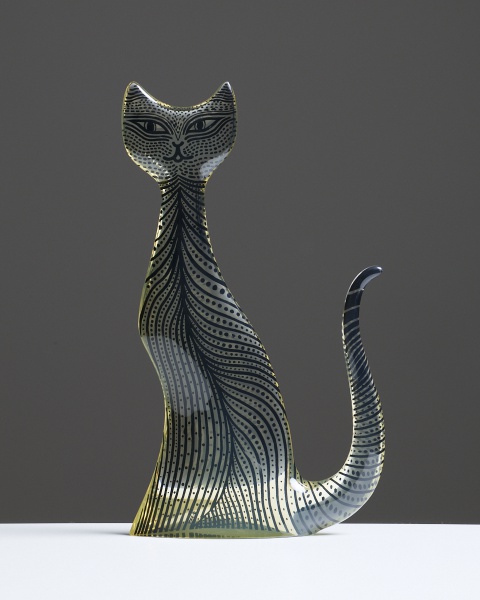 Abraham Palatnik (1928 – 2020) – Silon – Gato. Resina de poliester. Brasil, déc. 1970. Assinado Pal.. Dimensões: 41 x 24 x 7,5 cm.