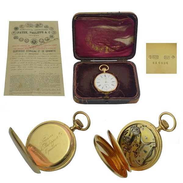 PATEK PHILIPPE. Relógio de Bolso em ouro 18k. Peso total: 99g. Estojo original e certificado de compra. Peso total: 99.5g. *Fotos por Lucien Prouvot.