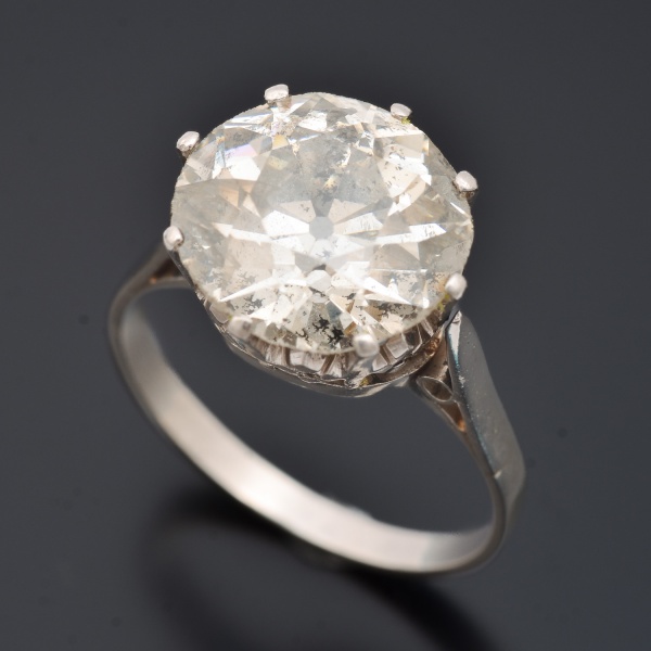 clique para ver o loteAnel em platina, aplicado com diamante de 4 CTS (6 x 9,8 mm) , aro 14, peso bruto 4,0 gramas