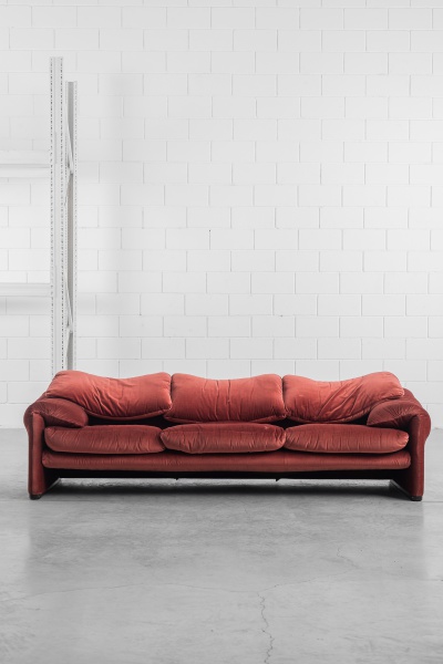 clique aqui para ver o loteVico Magistretti – Probjeto sob licença Cassina – Sofá Maralunga de três lugares, com tapeçaria em tecido. Selado. 240x80x72cm de altura.
