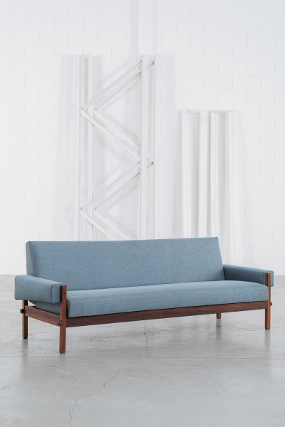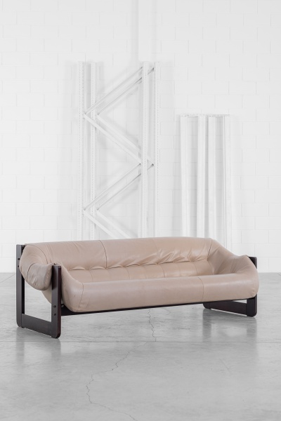 clique aqui para ver o lotePercival Lafer- 1970- Selado sofá modelo MP-97. Estrutura totalmente restaurada em madeira nobre, assento/encosto em espuma injetável (em perfeito estado), estofamento em couro ainda original (com sinais de uso). 206x73x68cm de altura.