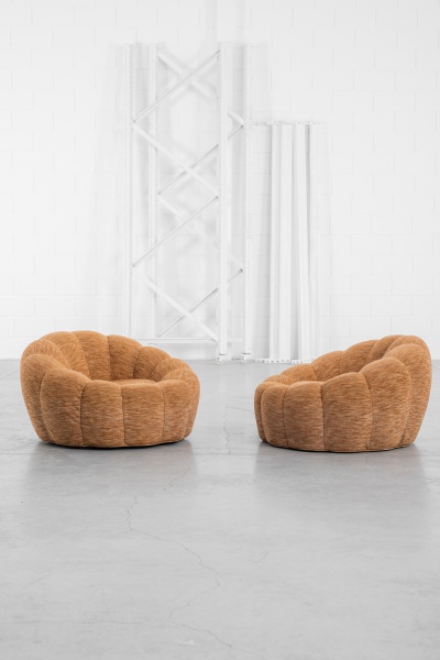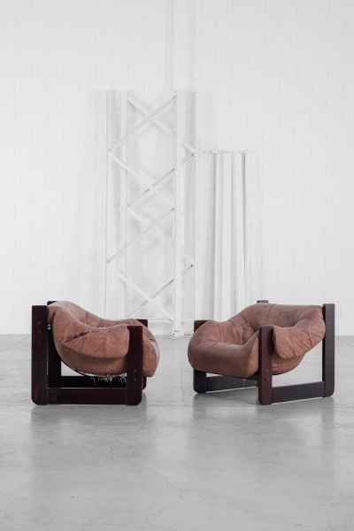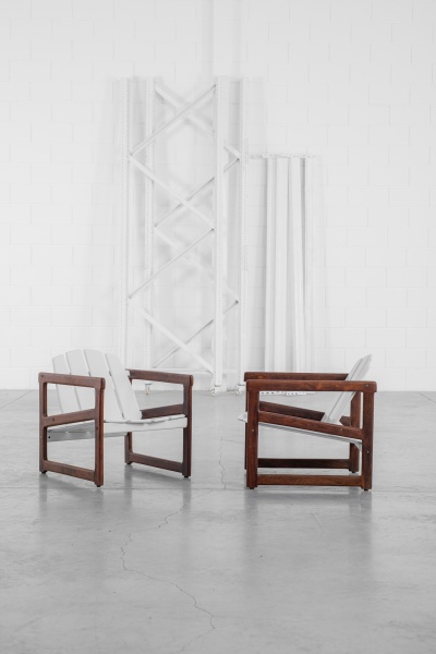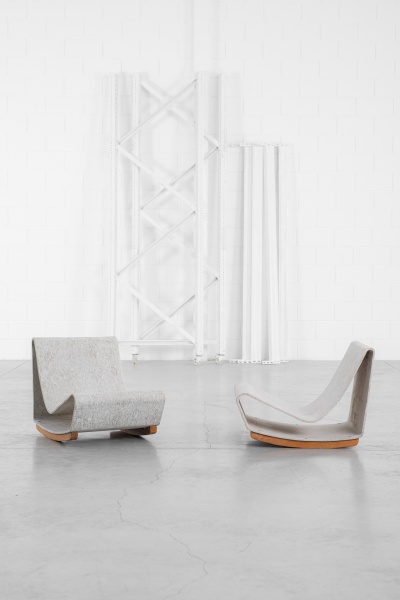 clique aqui para ver o loteWilly Guhl- Eternit – 1950- Par de poltronas Loop Chair. Executadas em fibrocimento. Com pés em madeira. Ambas com marcação, numeração e data feitas pela Eternit. 55x69x57cm de altura.