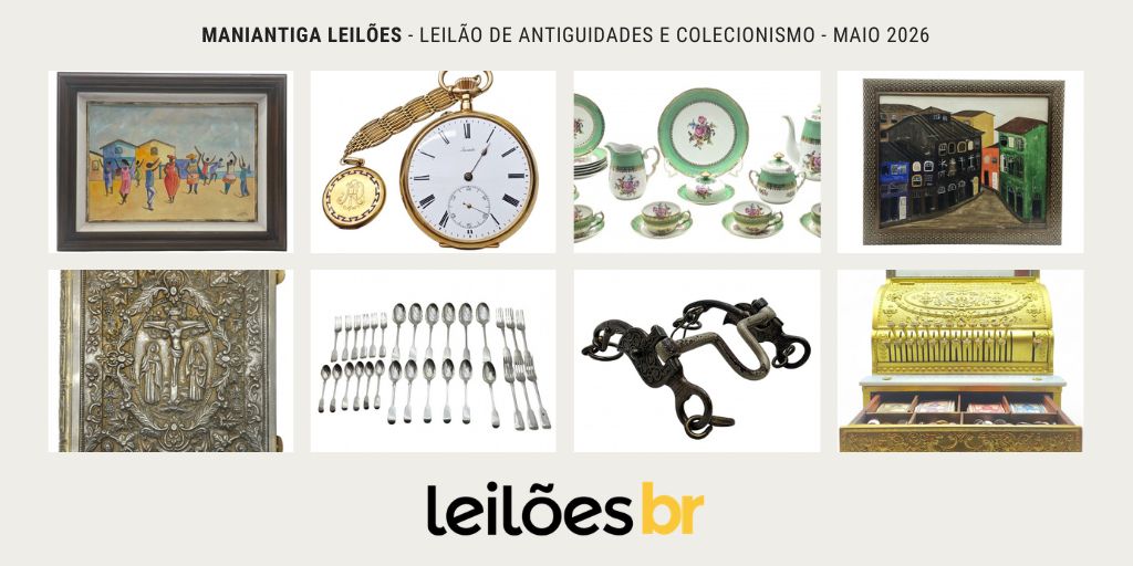 A Maniantiga Leilões fará nos dias 4, 5, 6, 7, e 8 de Maio, às 19h, o seu Leilão de Antiguidades e Colecionismo, com 1200 lotes.