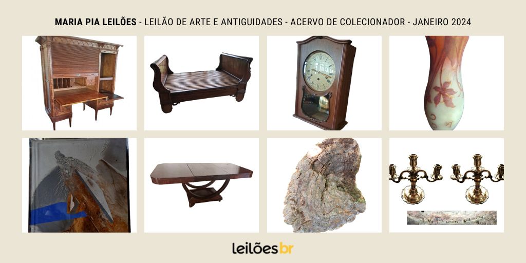 A Maria Pia Leiloeira fará no dia 24 de Janeiro, às 18:59, o seu Leilão de Arte e Antiguidades – Acervo de Colecionador. Não fique de fora!!!