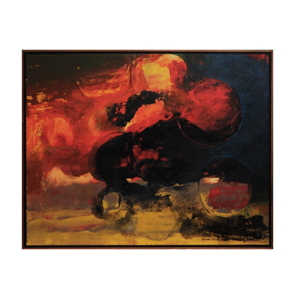 YOLANDA LEDERER MOHALYI (19091978) – Óleo sobre tela, Explosão Vermelha, assinado no c.i.d. e no verso. Medidas: 82,5 cm x 104 cm (MI) ou 107 cm x 86 cm (ME). Coleção particular. Nota sobre o artista: Yolanda Mohalyi foi pintora e desenhista. Estudou pintura na Escola Livre de Nagygania, na Hungria, e em 1927 ingressou na Real Academia de Belas Artes de Budapeste. Em 1931, mudou-se para o Brasil, fixando-se em São Paulo, onde passou a lecionar desenho e pintura.