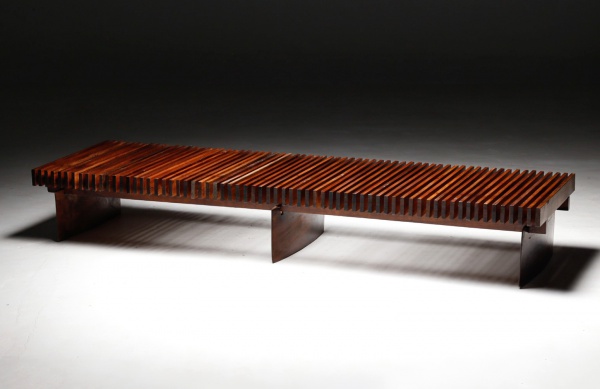 Sergio Rodrigues – OCA – Brasil, c.1963 – Estupenda poltrona modelo “Tonico” executada em gonçalo-alves com almofadas soltas revestidas em linho e encosto da cabeça em couro sintético. Estrutura apresentam marcas de uso. Poltrona catalogada no livro do design, Icatu – Soraia Cals – pag. . Medidas: 77x80x67h cm.