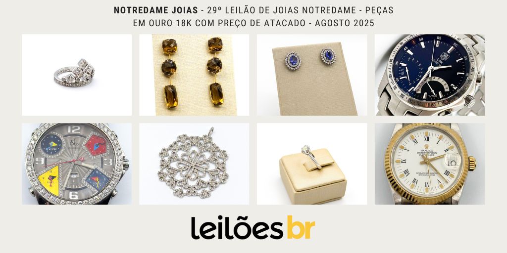 A NotreDame Joias fará no dia 02 de Agosto, às 18h o seu 29º Leilão de Joias Notredame – Peças em Ouro 18K com Preço de Atacado. Ótima oportunidade em artigos de luxuosos.