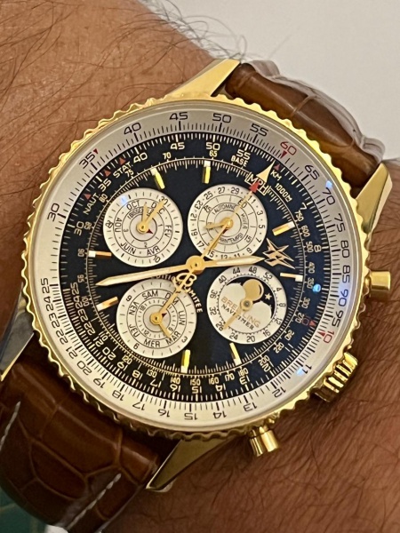 clique aqui para ver o loteRELOGIO BREITLING NAVITIMER CALENDARIO PERPÉTUO, AUTOMATICO, CRONÓGRAFO, EM OURO 18K ROSE, SERIE SUPER ESPECIAL PARA COMEMORAR OS 50 ANOS DO MODELO NAVITIMER 1852/2002, COM 43MM DIÂMETRO