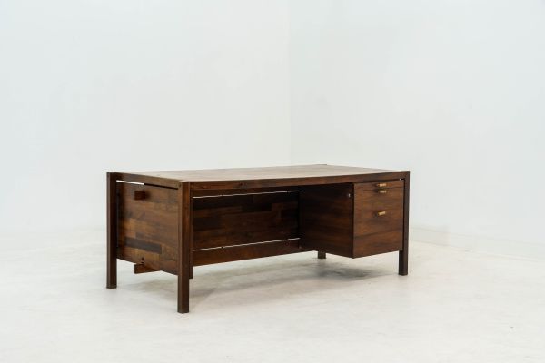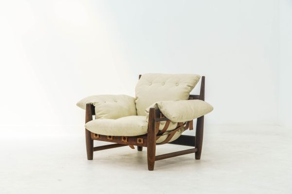 clique aqui para ver o lotePERCIVAL LAFER – Raríssimo conjunto modular MP-141, composto por 4 poltronas/módulos, uma banqueta de apoio e uma mesa de centro, executado em madeira nobre com revestimento original de courvin em tom de verde. C. 1970.