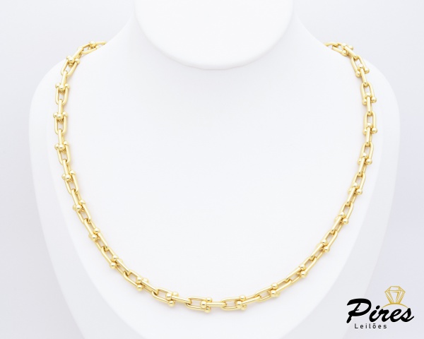 clique aqui para ver o loteTIFFANY & Co. – Colar de Elos em Ouro Amarelo – Tiffany HardWear, 45cm de comprimento, peso de 38 gramas. Acompanha certificado de garantia PIRES LEILÕES.