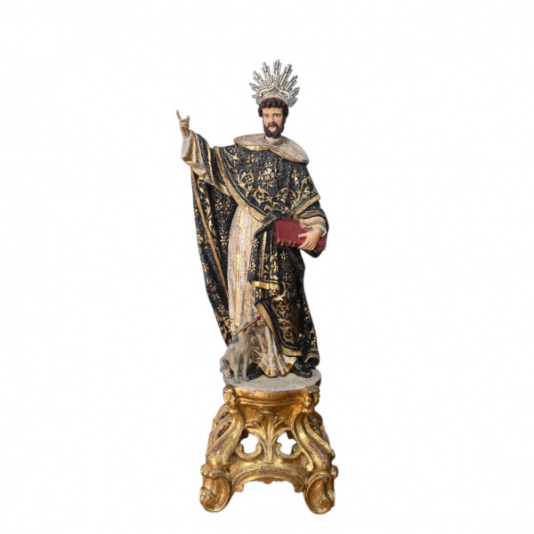 clique aqui para ver o loteGrande obra da escola hispano-americana do século XVIII/XIX. Cena Sacra, Óleo sobre tela, 190 x 130 cm.