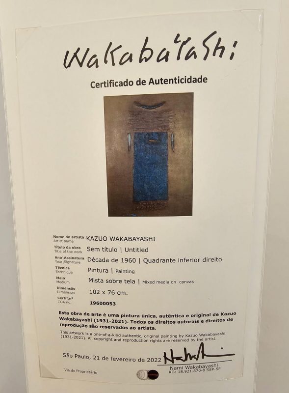 clique aqui para ver o loteKAZUO WAKABAYASHI. Abstrato, Técnica Mista sobre Tela, ACID, 102 x 76 cm. Década de 1960. Possui certificado de autenticidade emitido por Nami Wakabayashi.