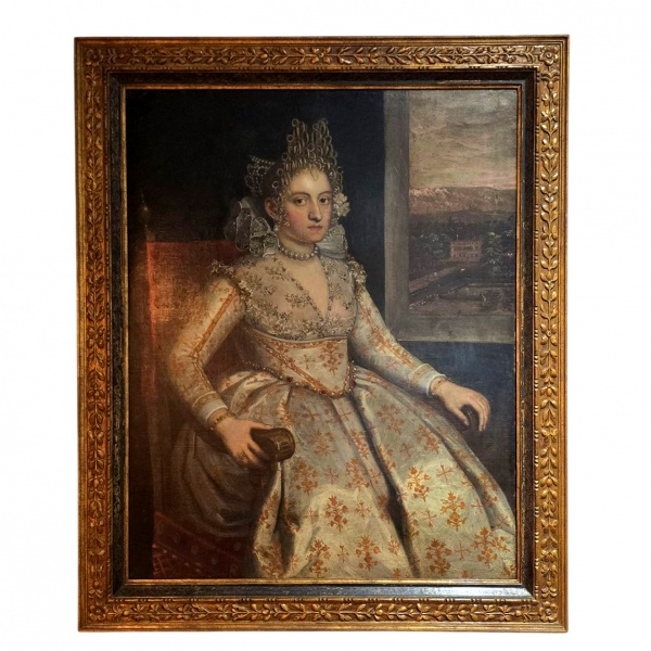 FRANS POURBUS, O Jovem. (1569 – 1622) (Atribuído). Retrato de Margarida Gonzaga, filha do Duque Vicenzo Gonzaga e Eleonora Medici. OST, 136 x 114 cm.