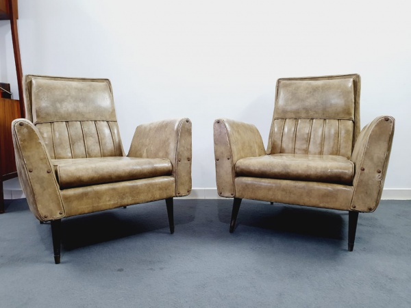 “Scapinelli – Marguta – Par de poltrona da década de 60, pés com acabamento em latão. PEÇAS SELADAS. Medidas: 78cm comprimento X 70cm largura X 83cmaltura X 50cm profundidade assento.