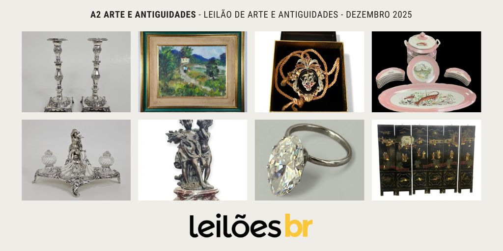 A A2 Arte Antiguidade fará no dia 4 de Dezembro, às 20h, o seu Leilão de Arte e Antiguidades. São 161 lotes variados, com excelentes oportunidades em porcelanas, quadros, antiguidades, esculturas e muito mais! Separamos abaixo alguns dos destaques, clique nas imagens para ir diretamente a peça. Coleção Embaixador Souza Neto. Do dia 22/11 a […]