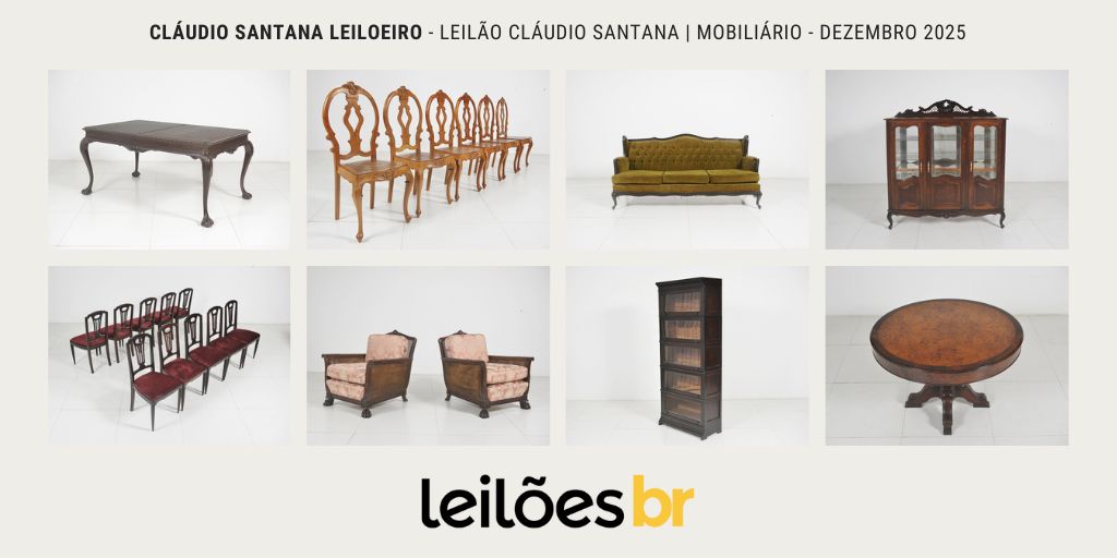 O Leiloeiro Cláudio Santana realizará no dia 4 de Dezembro, às 19h, o seu tradicional Leilão Cláudio Santana | Mobiliário, com 120 lotes disponíveis. Confira abaixo os destaques que separamos especialmente, clique nas imagens para ir diretamente à peça. EXPOSIÇÃO VISITAÇÃO DEVERÁ SER AGENDADA NOS TELEFONES: (21) 96417-8406 (21) 99142-8354. LEILÃO Dia 4 de Dezembro de […]