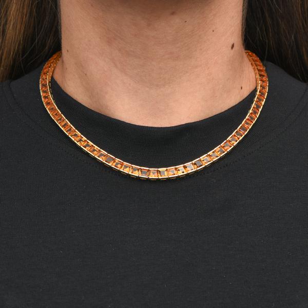Colar (Joalheria: H Stern) em Ouro Amarelo 18K (Inscrições no colar: MG923; 750) com Pedras Citrino. Obs.: Peça Vintage – circa 1980) Tamanho: Aprox. 41,5 Cm (Comprimento); Largura: aprox. 6,20 mm. Peso Total: Aprox. 43.5 Gr. NÃO Acompanha Certificado e/ou Garantia. NÃO Acompanha Caixa e/ou Embalagem Original.