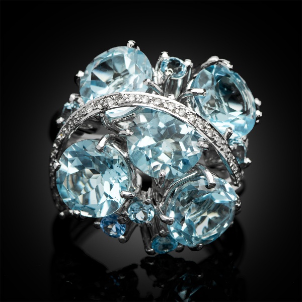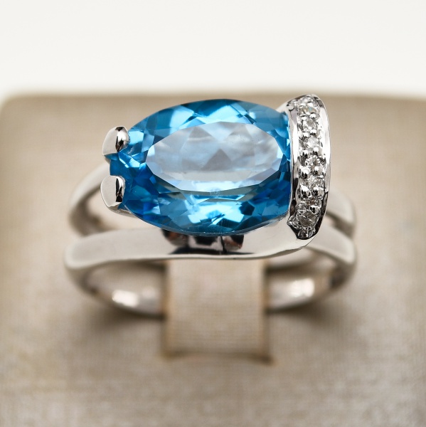 Maravilhoso Colar ‘Estilo Gargantilha’ em Ouro Branco 18K (Inscrição 750) contendo 530 Brilhantes ( Totalizando aprox. 4,50. ct. Grau de Cor IJ, Pureza VS/SI, predominantemente VS) e 15 Topázios Imperiais totalizando aprox. 9,22 ct ( Sendo o central Maior em lapidação Navete com aprox. 2,0 ct.